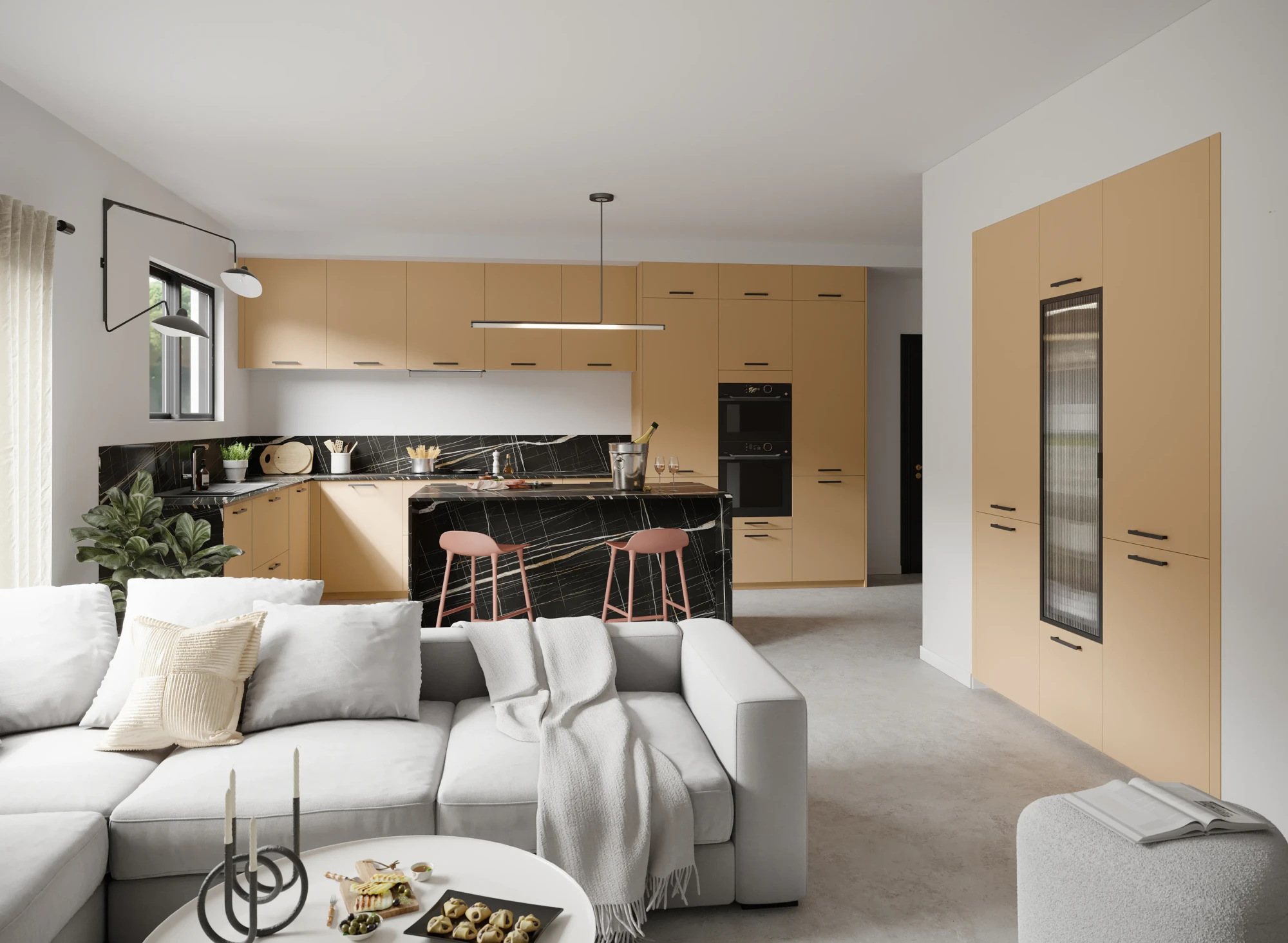 Les Opales : Façade en MDF, fi nition mélaminé laquée mat, 4 chants droits ABS assortis, contreface assortie mat, épaisseur 18 mm.
